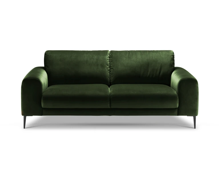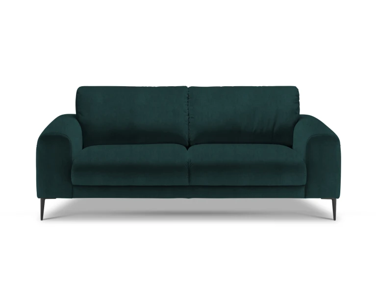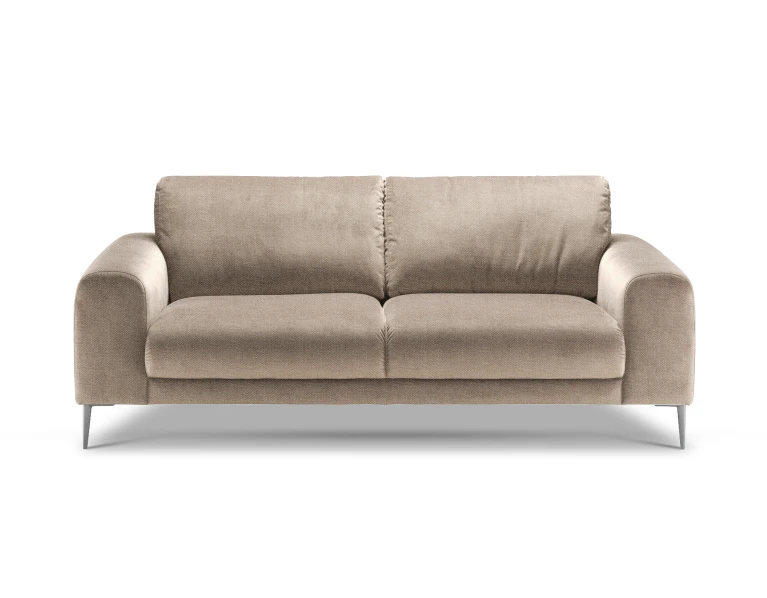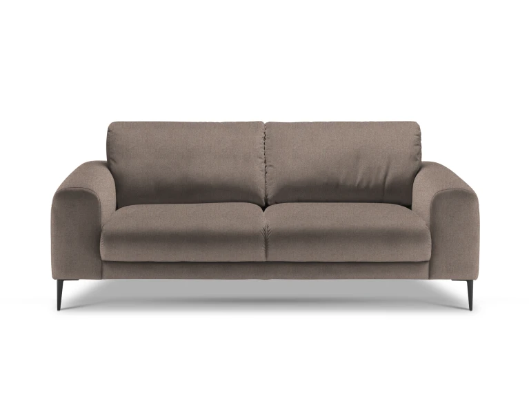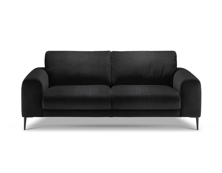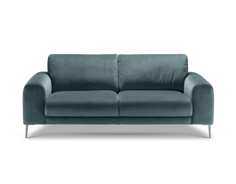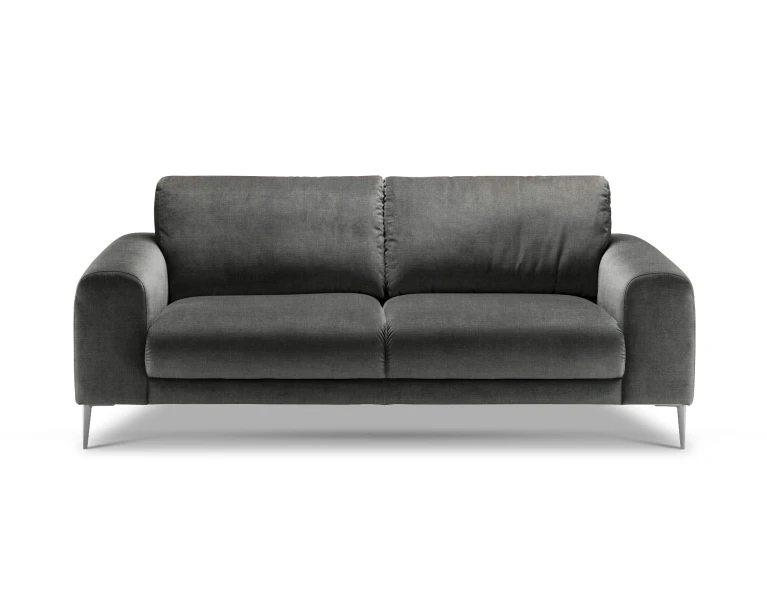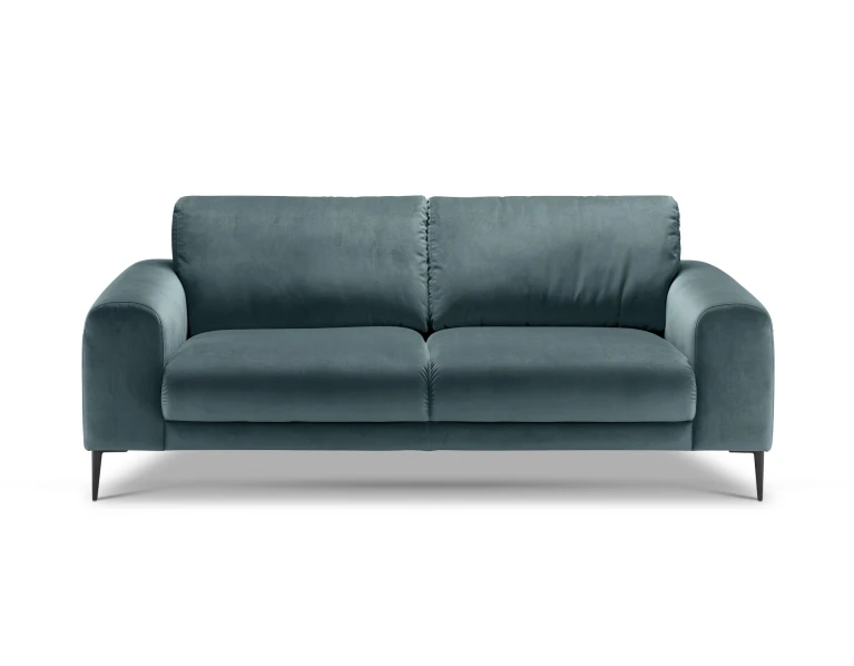 Sofa nedidelė, bet čia patogiai susės du žmonės. Sėdėjimo plotis 152cm, aukštis 46cm. Kojelės metalinės: matinės juodos spalvos arba blizgios. O jeigu jums reikia daugiau vietos – greta lengvai priderinsite panašių apmušalų ir dizaino fotelį, ne vieną staliuką iš Isku asortimento. Arba rinkitės didesnes, 3-vietę, kampines Joy sofas.
