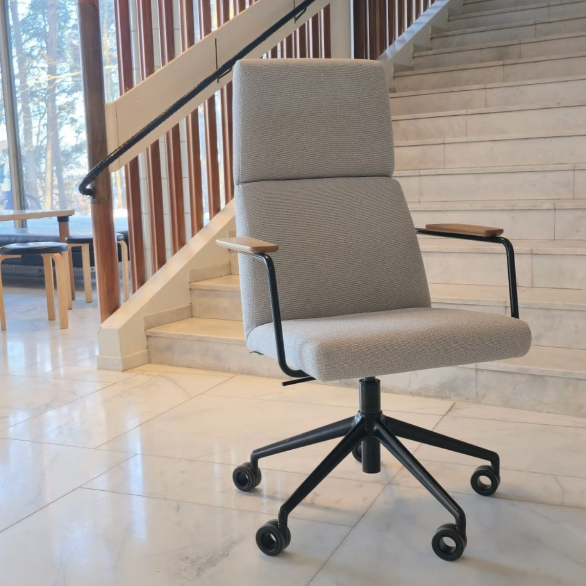 Solt Meeting High kėdė, sukurta dizainerio Petteri Häkkinen, gaminama Suomijoje ir skirta susitikimų bei darbo erdvėms, kur svarbūs tiek sėdėjimo komfortas, tiek laikui nepavaldus dizainas. Aukštas atlošas suteikia atramą ilgesniam sėdėjimui, o lengva ir vizualiai neapkraunanti forma išlaiko visai „Solt“ kolekcijai būdingą estetiką.
