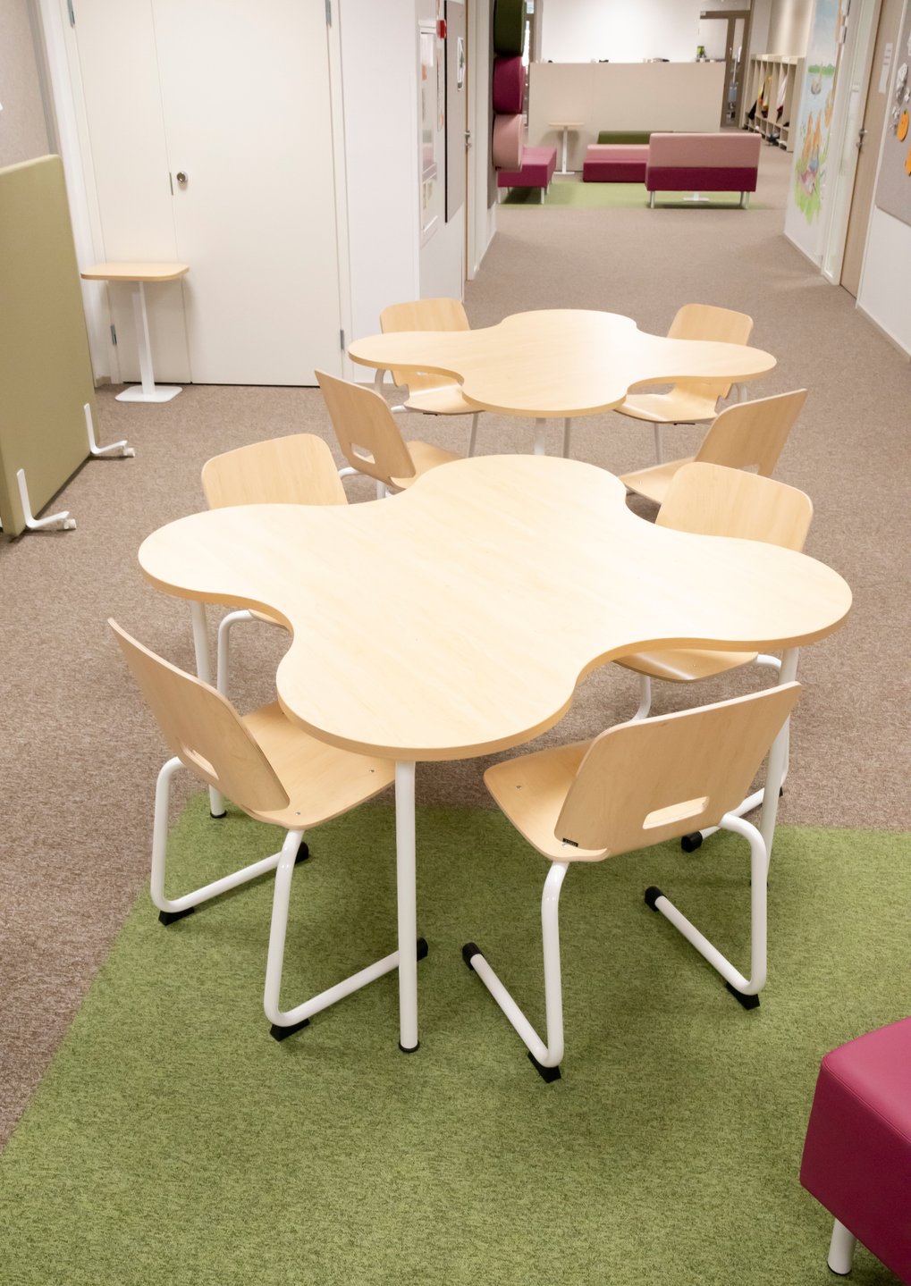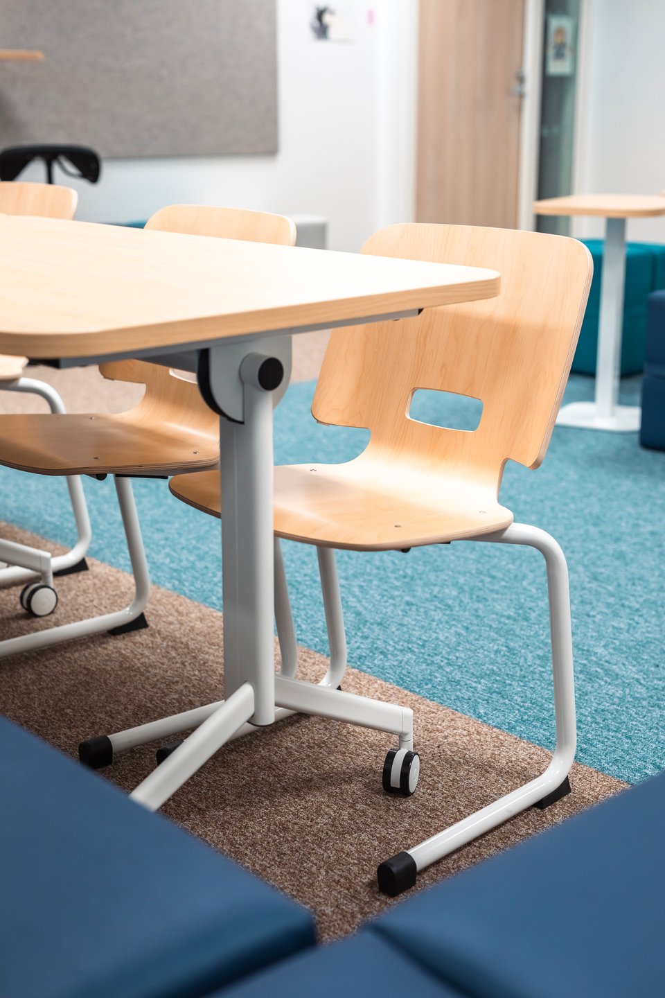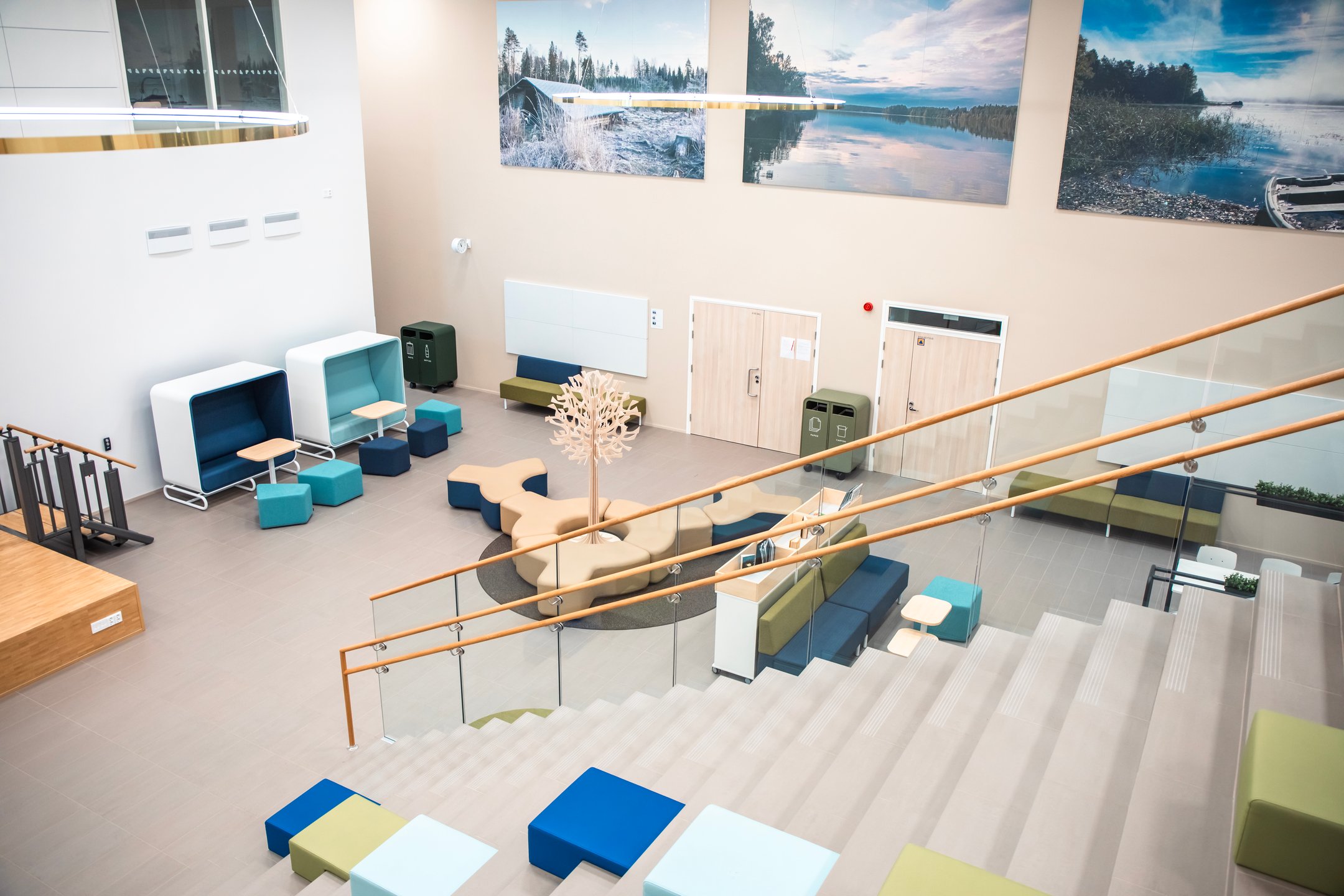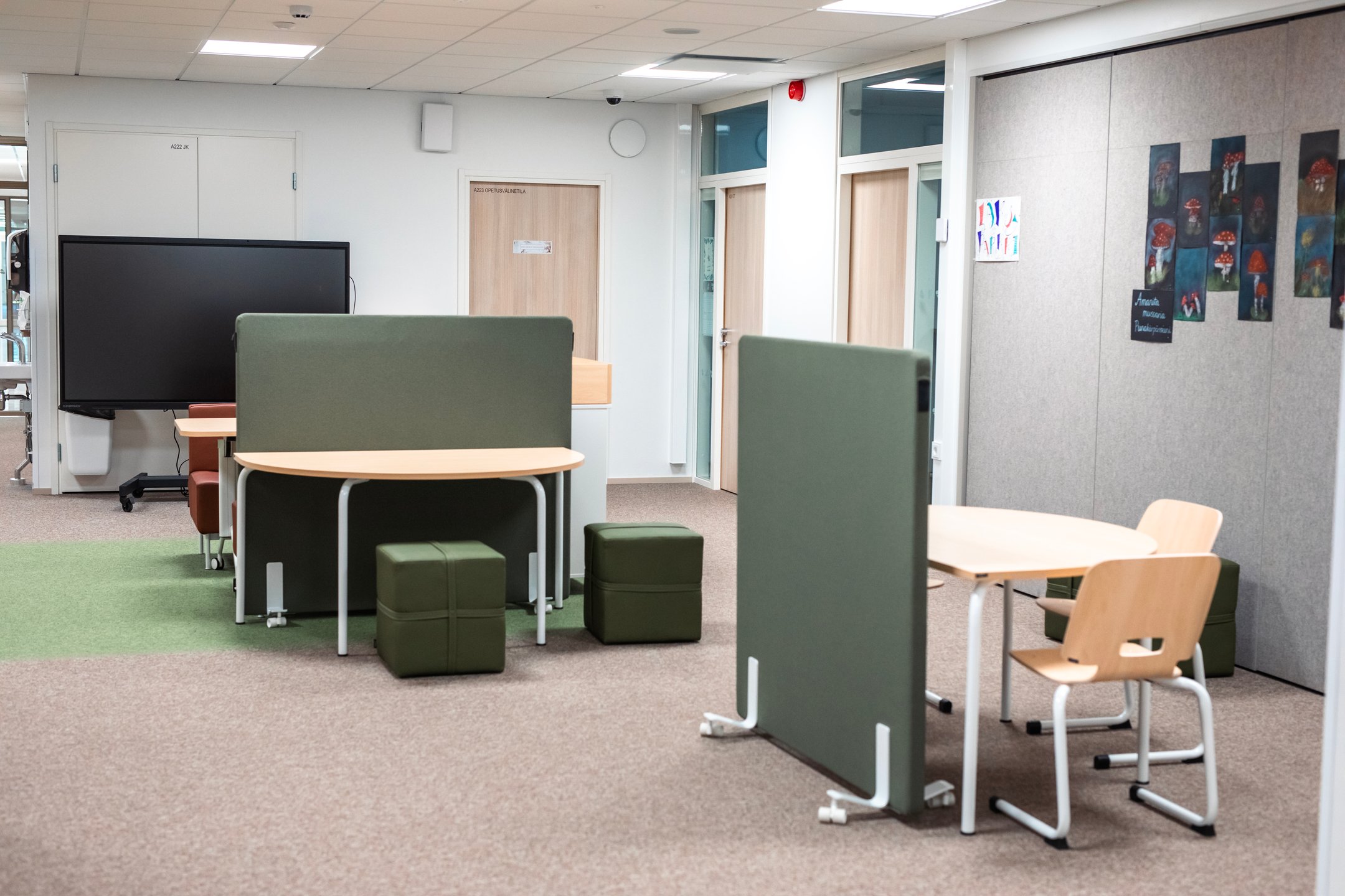 Didelis dėmesys skirtas erdvių universalumui, akustikai, pasirinkta rami spalvų paletė. Baldai ir sprendimai lengvai pritaikomi prie skirtingų mokymo metodų ir darbo formų. Visa tai kuria funkcionalią, ramią ir įkvepiančią aplinką, kurioje mokiniams lengva susikaupti, jaustis gerai ir mokytis kartu.