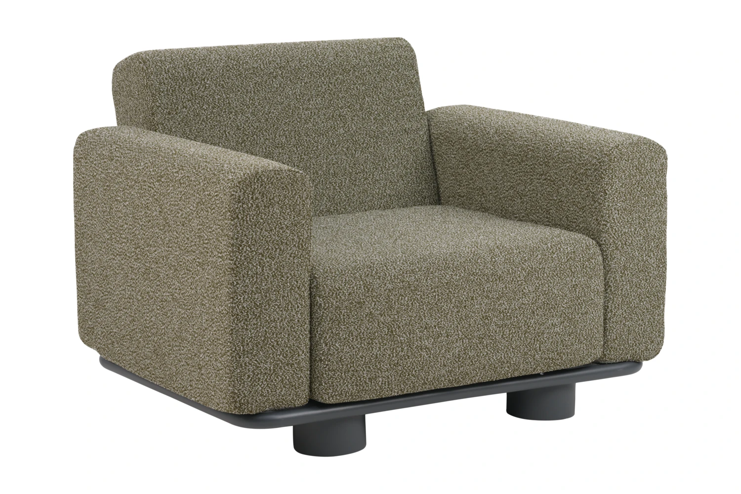 Fotelis Bolster — kviečiantis prisėsti komfortas ir išraiškingas dizainas viename. Visiškai minkštos, aptakios formos, pūstos pagalvės ir masyvios kojelės suteikia kolekcijai išskirtinį charakterį, o tvirtas antracito spalvos aliuminio rėmas užtikrina ilgaamžiškumą bei atsparumą lauko sąlygoms.
