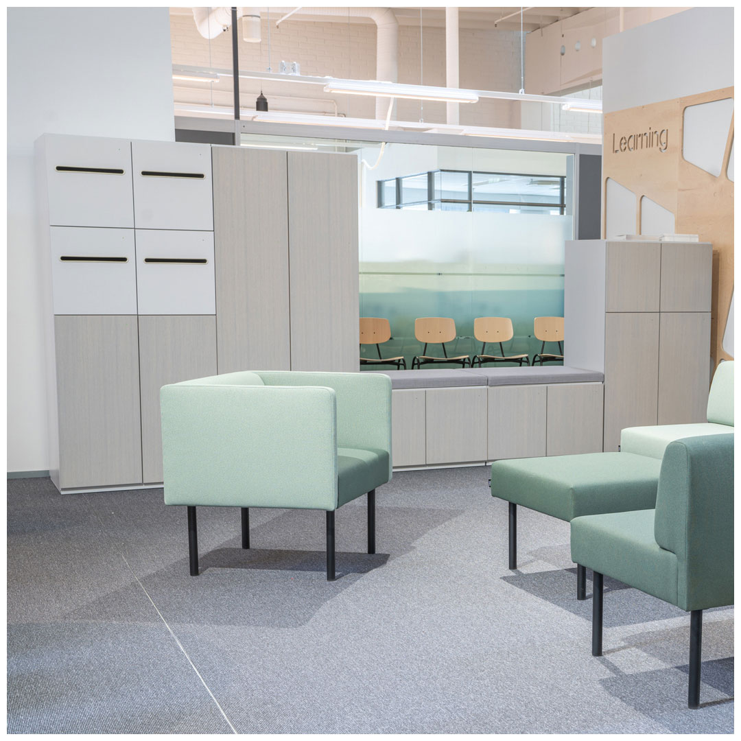 Combi tai modulinė serija minimalistinė ir universali, tobulai tiks tiek biurams, viešųjų ervių laukiamiesiems, mokykloms.