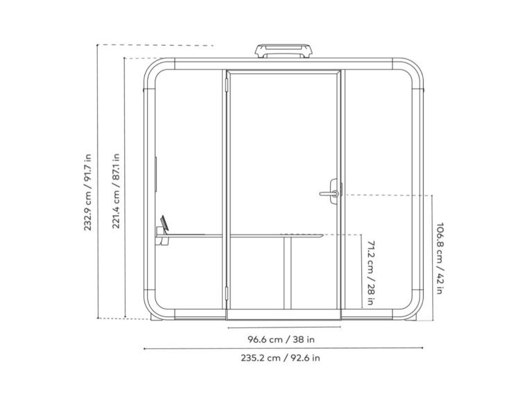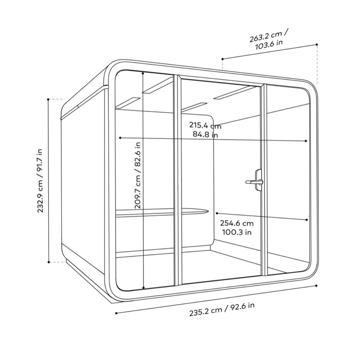 Aukštos klasės akustinė konstrukcija užtikrina, kad pokalbiai kabinos viduje išliktų privatūs, o išorinis triukšmas netrukdytų susitikimui. Tai patikimas sprendimas konfidencialioms diskusijoms ar intensyviam komandiniam darbui.