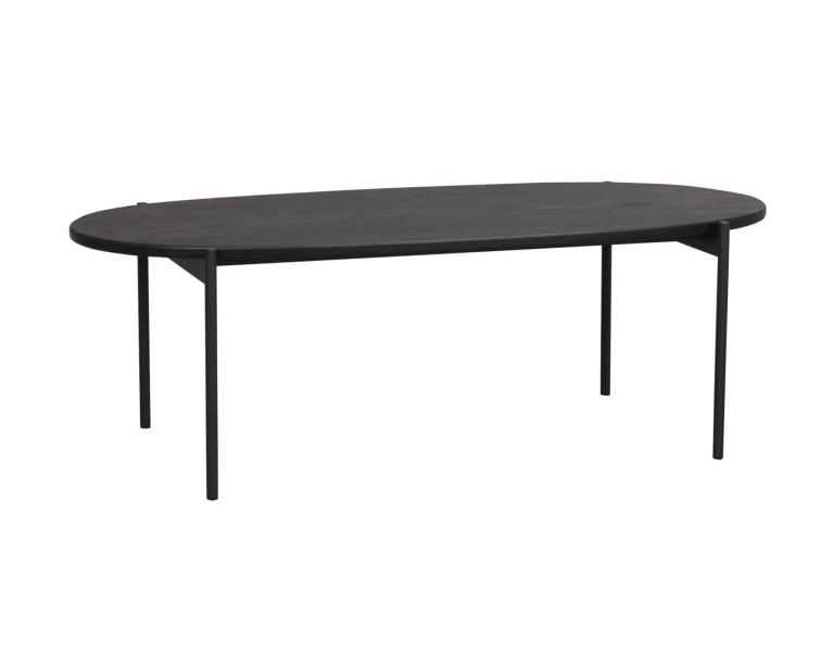 Modernaus stiliaus, lengvo dizaino apvalus kavos staliukas Skye 80x40cm skersmens stalviršiu. Metalinis juodos spalvos staliuko Skye pagrindas tvirtas, laiko juodo ąžuolo faneruotės stalviršį, kurio storis 2cm. Šis nedidelis baldas patraukia akį savo išskirtiniu minimalistiniu dizainu, skirtas moderniam, šiuolaikiškam interjerui.