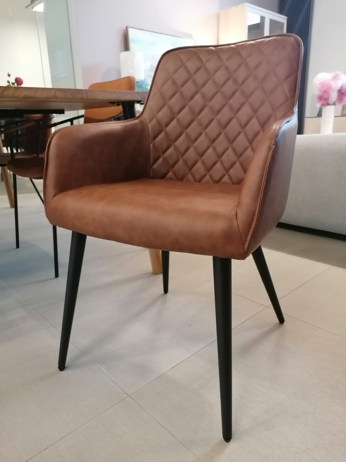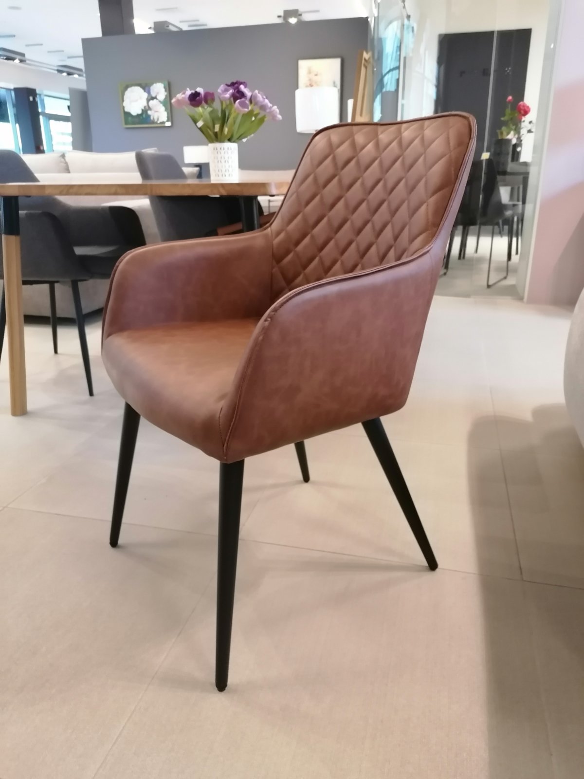 Kėdės Nova iš ekspozicijos 4vnt Kauno salone su rudu odos imitacijos audiniu. Kaina nurodyta 1vnt.