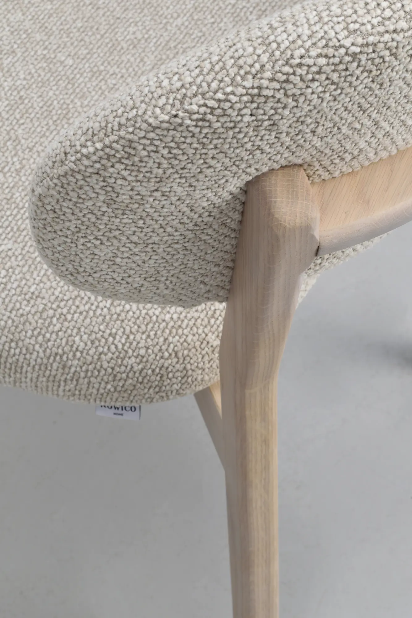 Kėdė Patterson lengvai dera prie įvairių valgomojo stalų ir interjero stilių. Stora audiniu aptraukta atrama nugarai ir sėdimoji dalis užtikrina patogų bei erdvų sėdėjimo pojūtį. Audinys, pasižymintis šiek tiek stambesniu ir tekstūruotu audimu, suteikia charakterio ir šiuolaikiškumo įspūdį.
