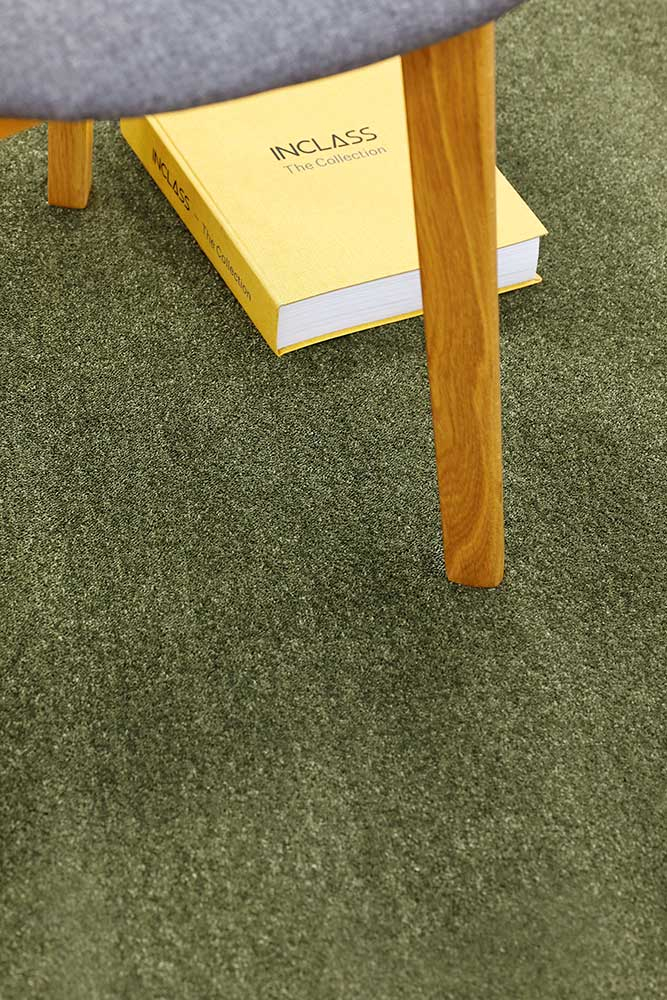 Kilimas Eden Round Olive – dviejų dydžių kirpto plauko kilimai iš poliamido pluošto.