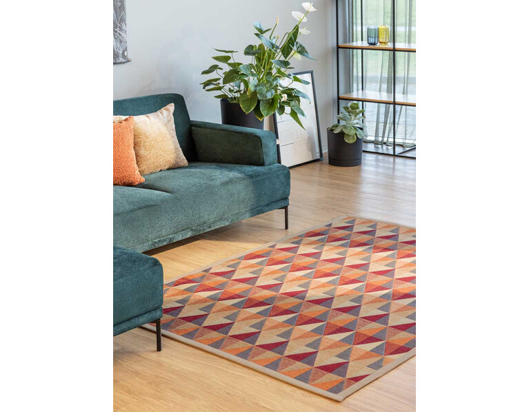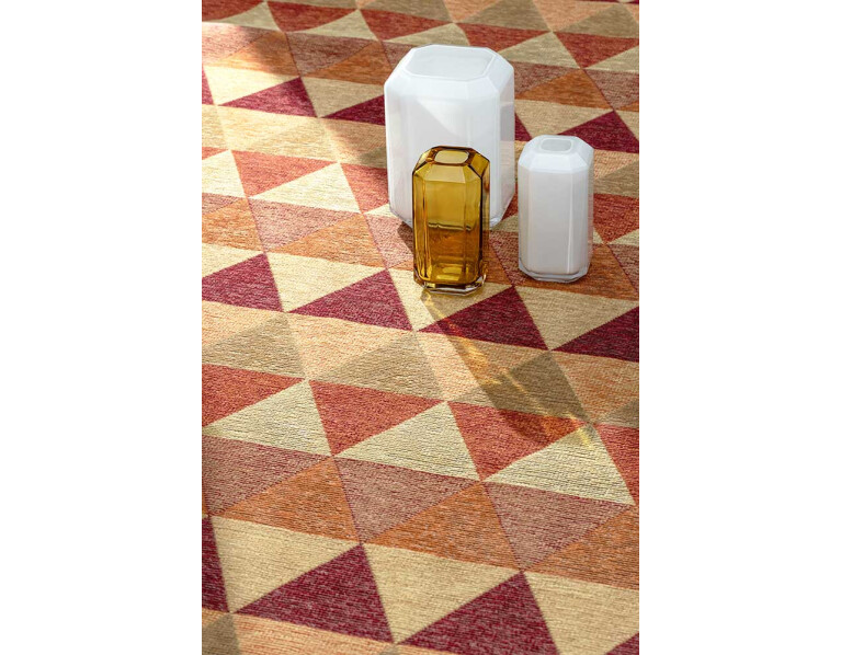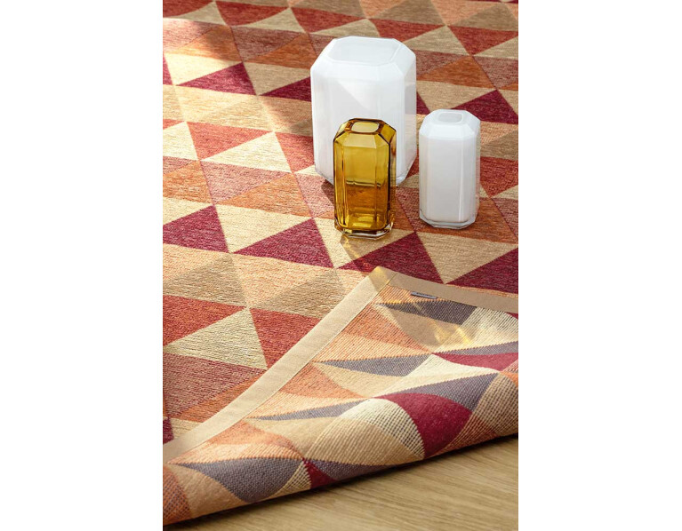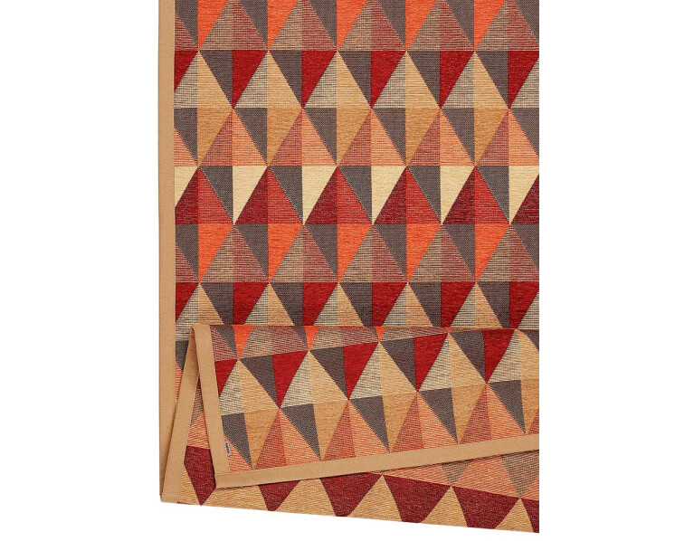 Kilimas Norra Gold-red dvipusis, puoštas rombų raštais.