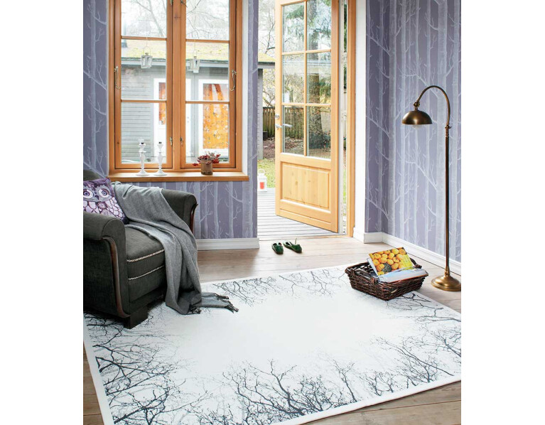 Modernaus dizaino kilimas Puise white dvipusis puoštas medžių raštais.