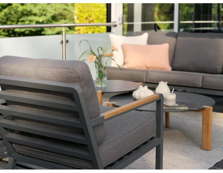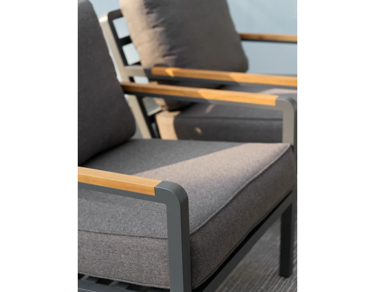 Naujas modelis terasai – Nova. Dvi spalvos: antracito ir šviesi „chaki”. Komplektą sudaro sofa ir du foteliai.