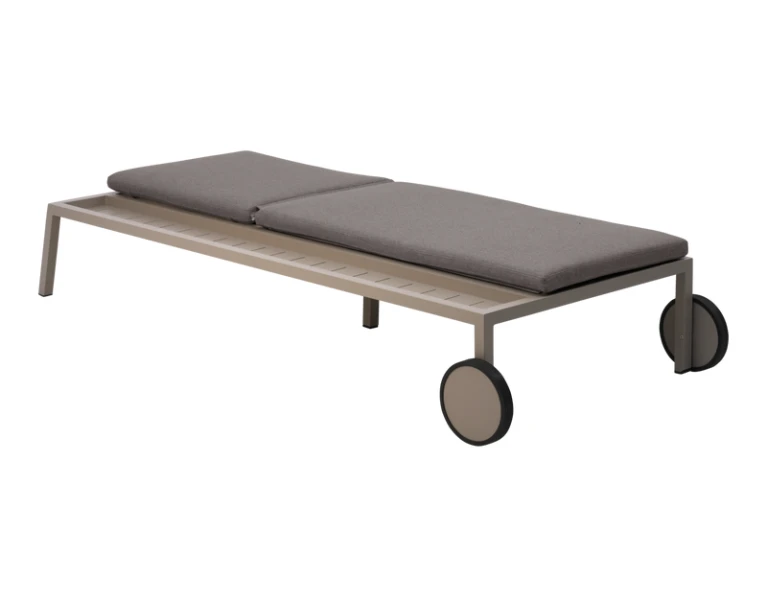 Saulės gultas Samvaro – išskirtinai platus lauko gultas, sukurtas patogiam ir stilingam poilsiui terasoje ar sode. Dešinėje pusėje integruota lentynėlė suteikia dar daugiau patogumo – ant jos patogu pasidėti gėrimą, knygą ar saulės kremą. Dėl ratukų gultą lengva perkelti, o reguliuojama atlošo padėtis leidžia prisitaikyti poilsį pagal savo poreikius. Modelis pagamintas iš aliuminio, textileno ir olefino, o pagalvėlė turi vandeniui atsparesnį TPU sluoksnį.