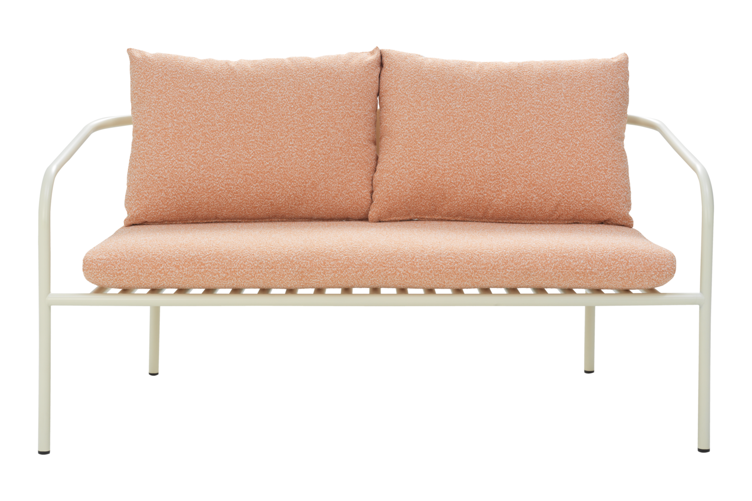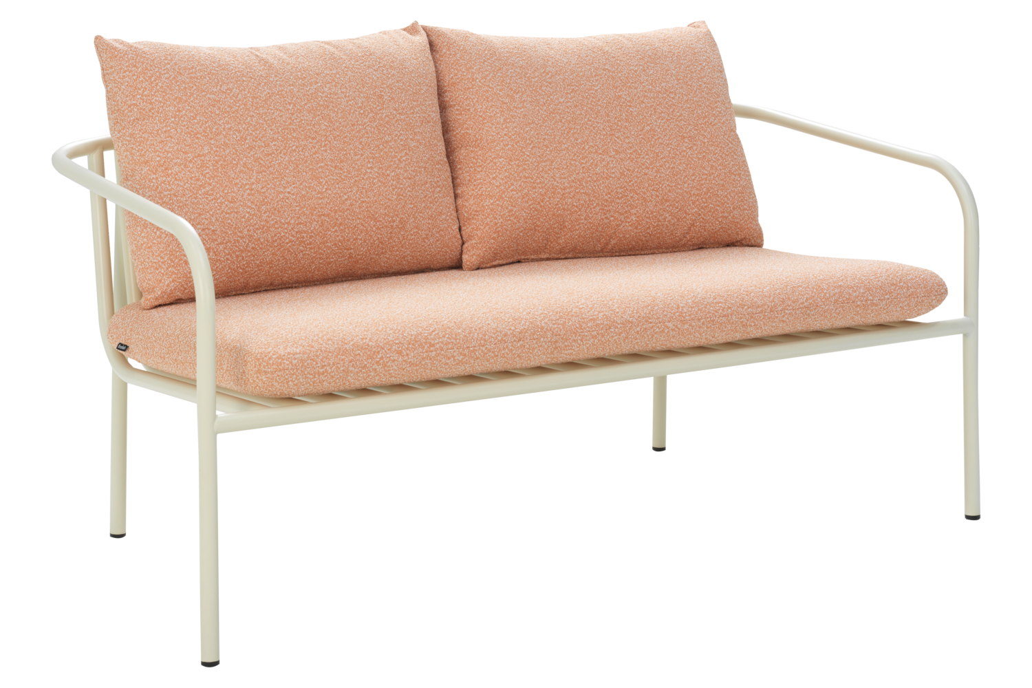 Lauko sofa Bendt — moderni elegancija jūsų terasai! Šį sezoną kartojamas Bendt lauko baldų modelis naujais Teddy/bukle tekstūriniais gobelenais oranžinės bei juodos spalvos.