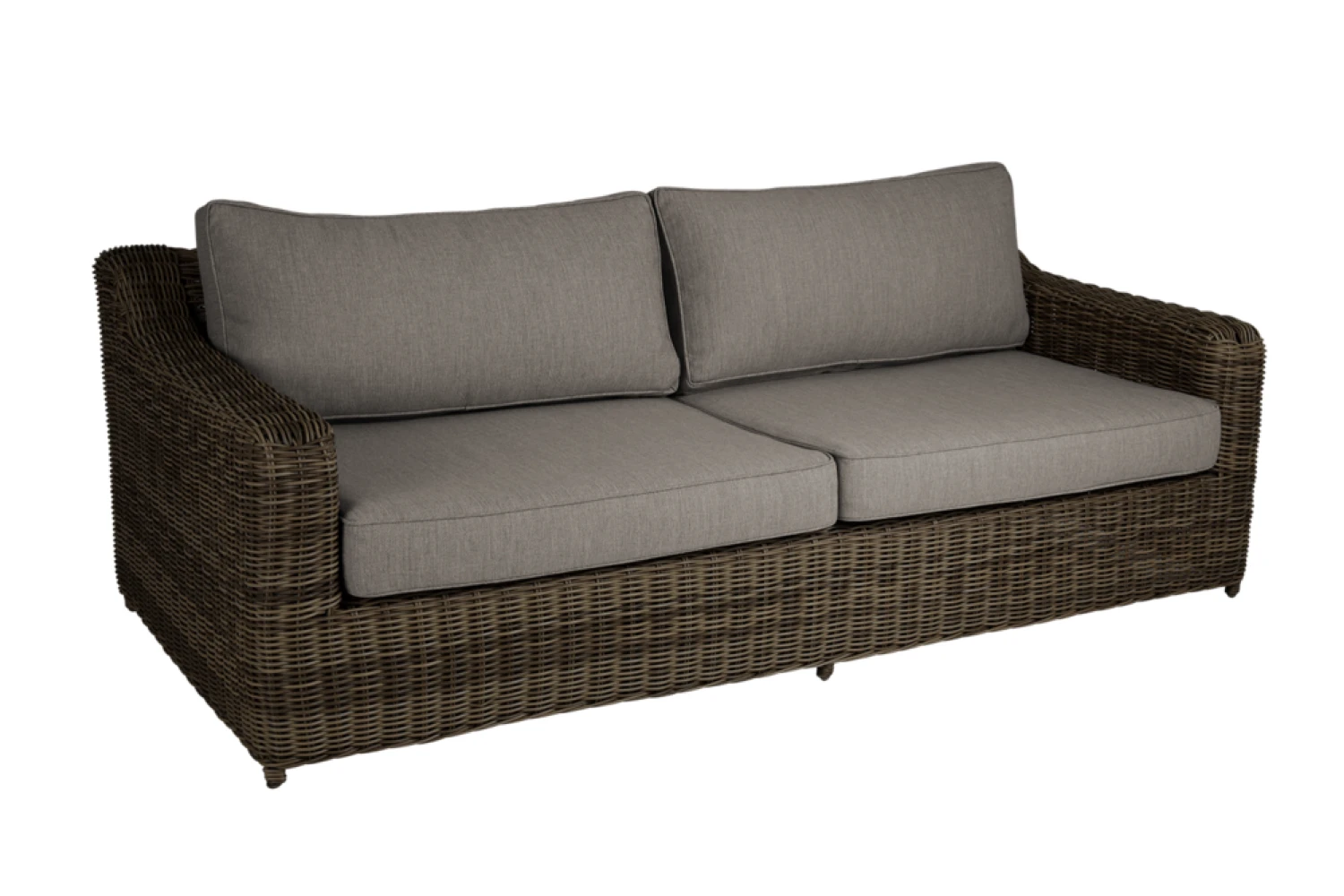 Klasikinio dizaino, pinto apvaliomis sintetitnio ratano vytelėmis, sofa Glendon. Derinti siūlome su Glendon foteliais.