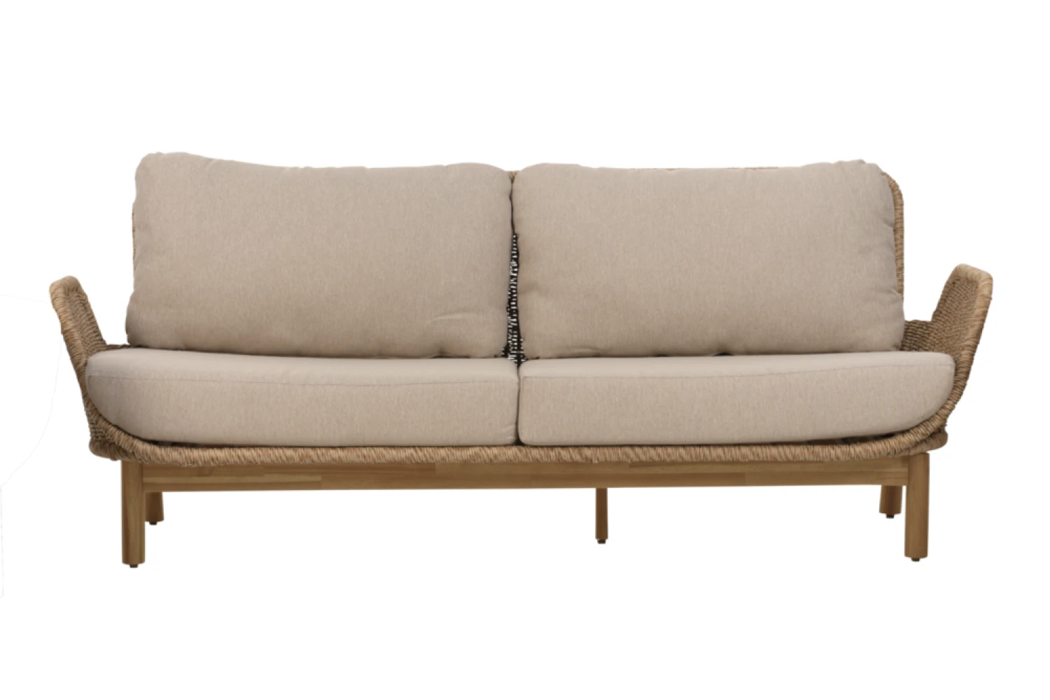 Spalva: FSC sertifikuoto natūralaus tikmedžio (bėgant laikui keičia spalvą į pilką), audinys šviesus „beige”, rėmas apipintas šviesiai rusvomis dirbtinio ratano vytelėmis.