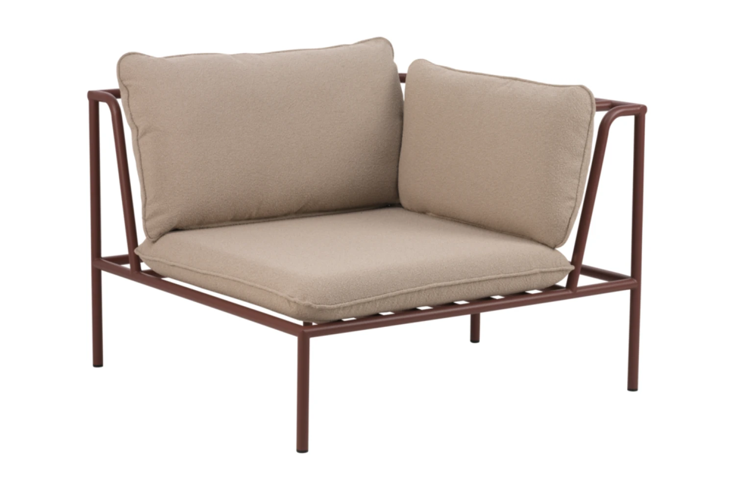 Collier lauko baldų kolekcijos kampinė dalis, kuri gali būti ir kaip atskira sėdimoji vieta — tarsi fotelis su vienu porankiu.