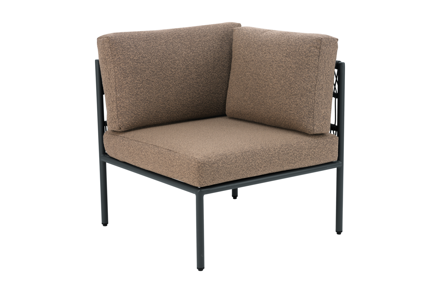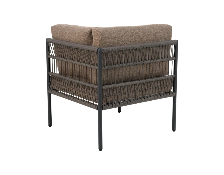 Reno lauko baldų kolekcijos kampinė dalis, kuri gali būti ir kaip atskira sėdimoji vieta – tarsi fotelis su vienu porankiu.