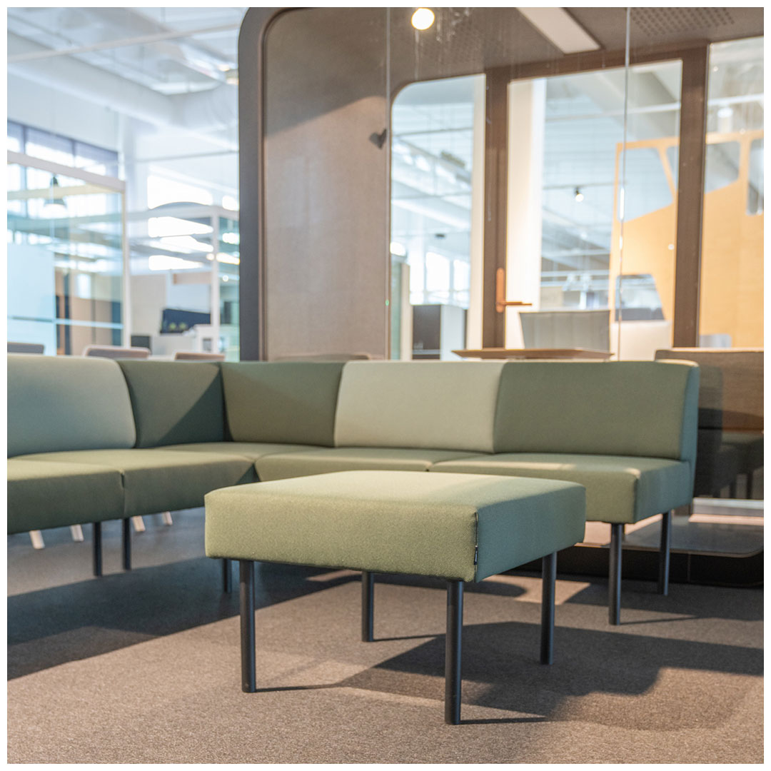 Pufas Combi dėl savo aiškios formos ir subtilaus dizaino lengvai pritaikomas tiek šiuolaikiniuose biuruose, tiek mokymosi ar poilsio zonose.