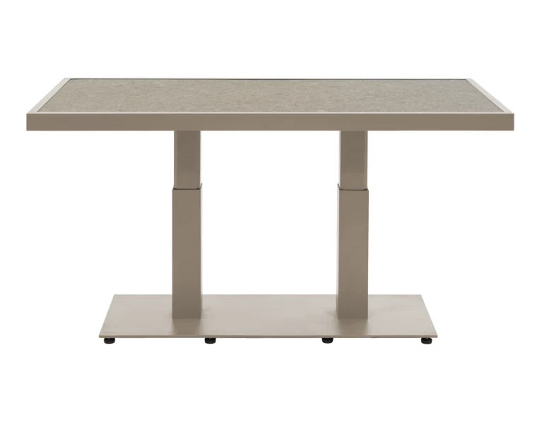 Sezono naujiena – reguliuojamo aukščio staliukas Scale. Dera prie visų šviesiosspalvos lauko baldų, terasos komplektų, fotelių. Puikus sprendimas, kai terasoje vietos yra tik vienam stalui. Nesunkiai ir greitai lounge zoną pritaikysite pietums.