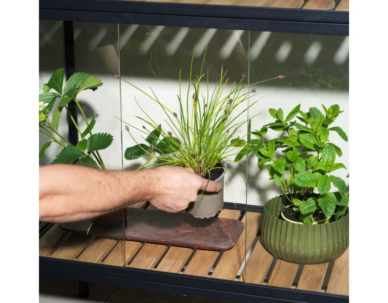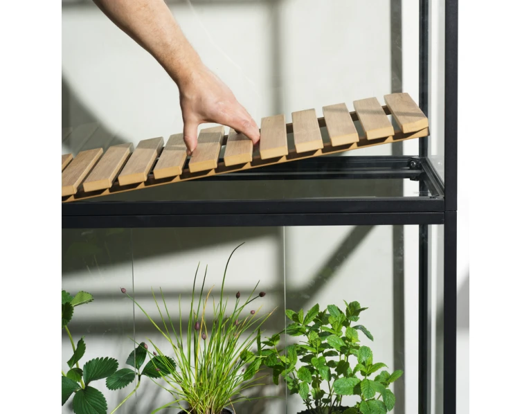 Abu variantai aprūpinti reguliuojamomis kojelėmis, grūdintu stiklu ir išmaniomis detalėmis: nuimamu stogu, lentynomis bei augalų tvirtinimo žiedais. Viskas apgalvota tam, kad jūsų augalai turėtų kuo geresnes sąlygas augti, vešėti ir džiuginti gausiu derliumi.