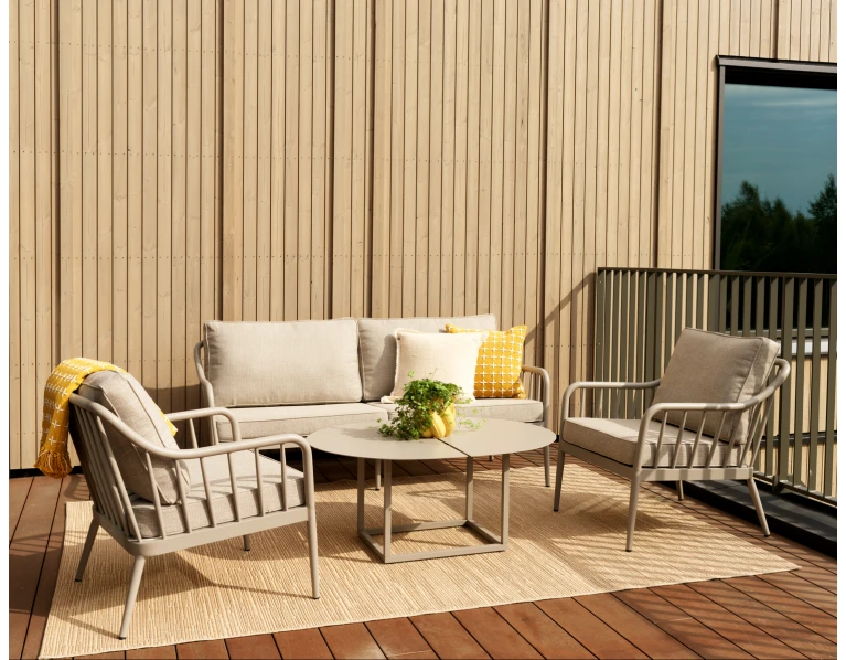 Sofa Coleville – modernaus ir klasikinio stiliaus derinys lauko terasai. Kolekcijoje yra ir fotelis. Minkštos pagalvės suteikia patogumą sėdint, baldas nemasyvus, elegantiškas. Vasariškai gaivi šviesi spalva.