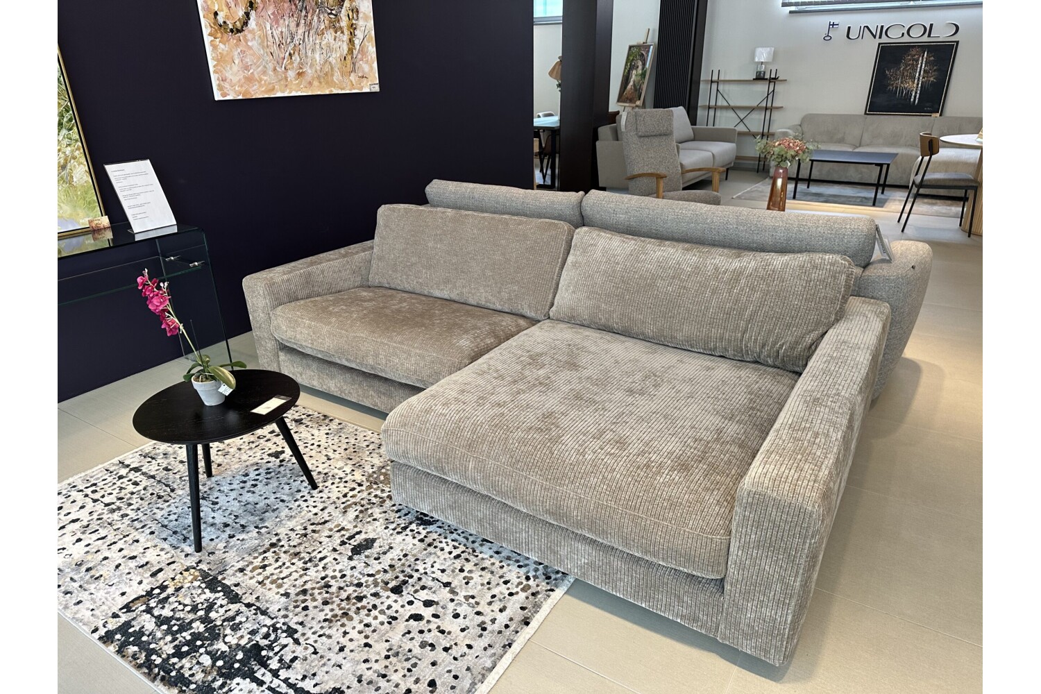 Pasiūlymas iš Kauno salono expozicijos, sofa Duncan su rusvu, juostuotu gobelenu (juostelės stambesnės).