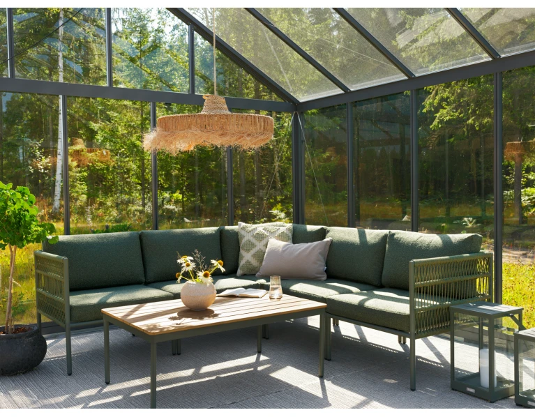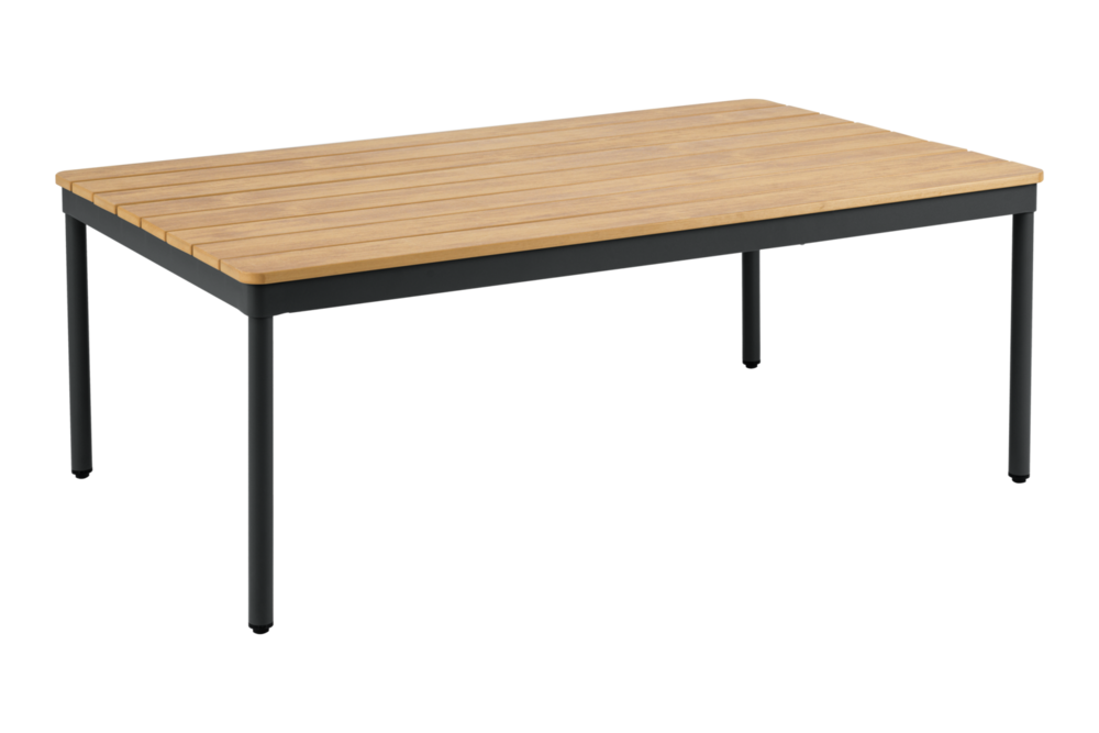 Reno serijos žurnalinis staliukas terasai. Gali būti derinamas su visais lauko baldais. Lengvai prižiūrimas – stalviršis perdirbto plastiko, medžio imitacija. Smulkūs tarpeliai tarp lentučių palikti vandens perteiklui nubėgti.