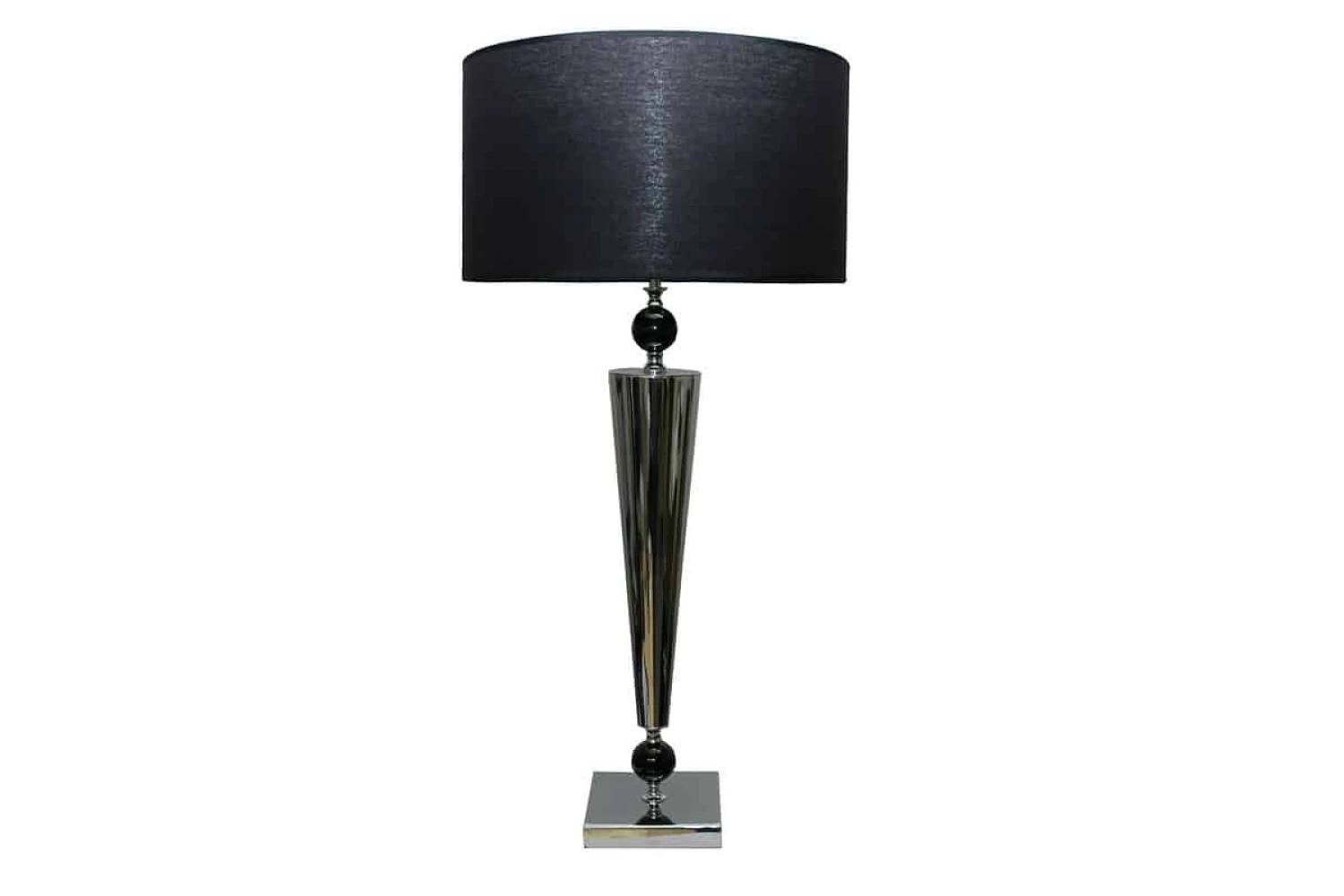 Šis žavingas „Torch“ stalinis šviestuvas jau pats savaime tarsi meno kūrinys. Jo dizaine suderintos net trys skirtingos figūros: kvadratas, kūgis ir apskritimas, kurie laiko klasikinės cilindro formos juodą gaubtą. Juodos ir blizgaus chromo spalvų derinys – idealus tiek moderniam, tiek klasikiniam interjerui.
