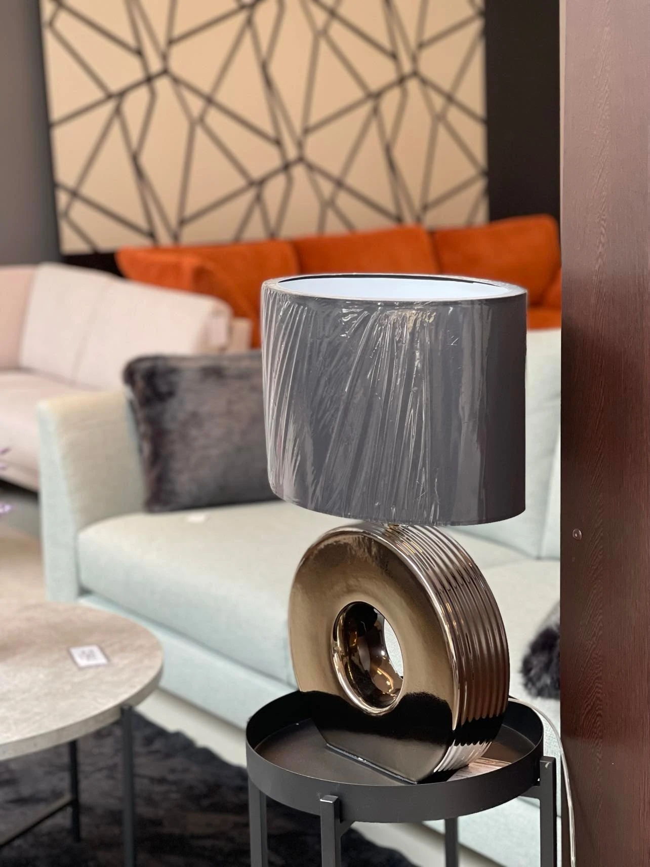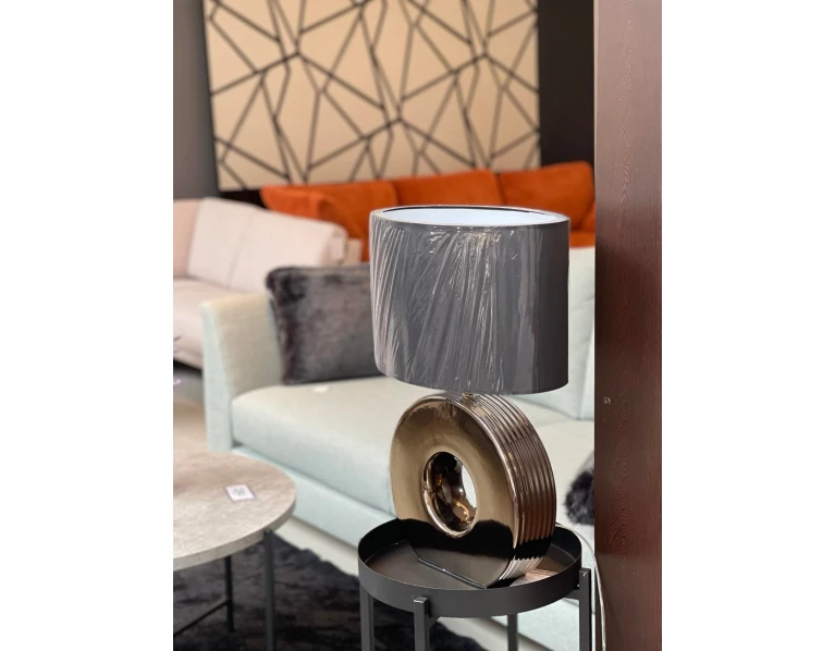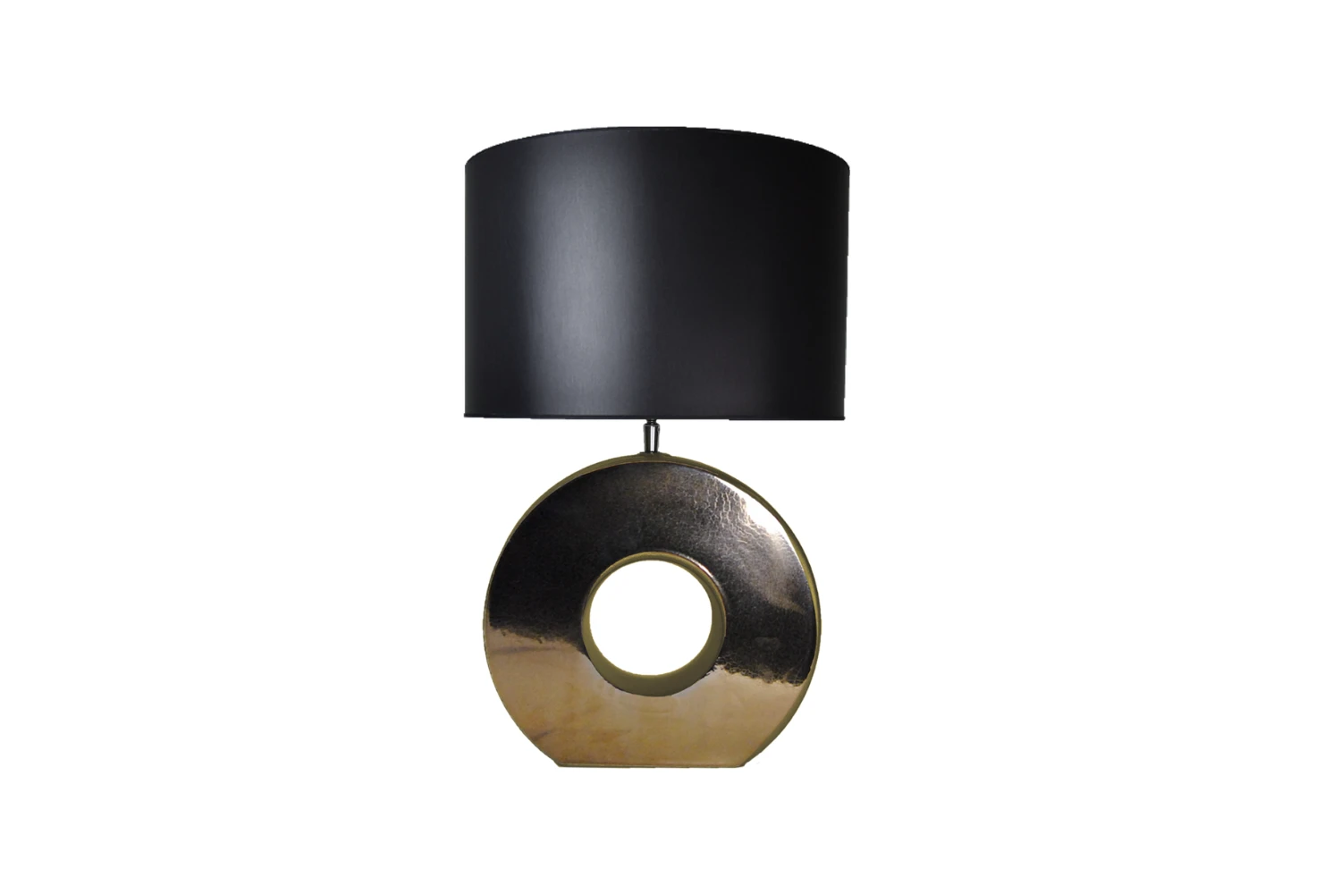 Šviestuvas Aron su juodos spalvos gaubtu ir aukso spalvos keramikiniu pagrindu. Stalinis šviestuvas. Yra daugiau Aron šviestuvo spalvų.