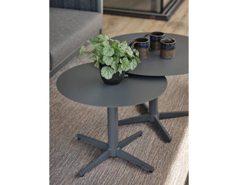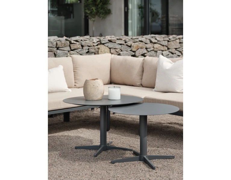 Paprastas, stabilus ir šiuolaikiškas – šis aliuminio kavos staliukas išsiskiria subtiliu dizaino akcentu. Leiskite akims nuslysti staliuko kolona žemyn iki pagrindo – jos forma lengvai primena kaimo laukus ir vėjo malūnus, suteikdama moderniam baldui žaismingo charakterio.