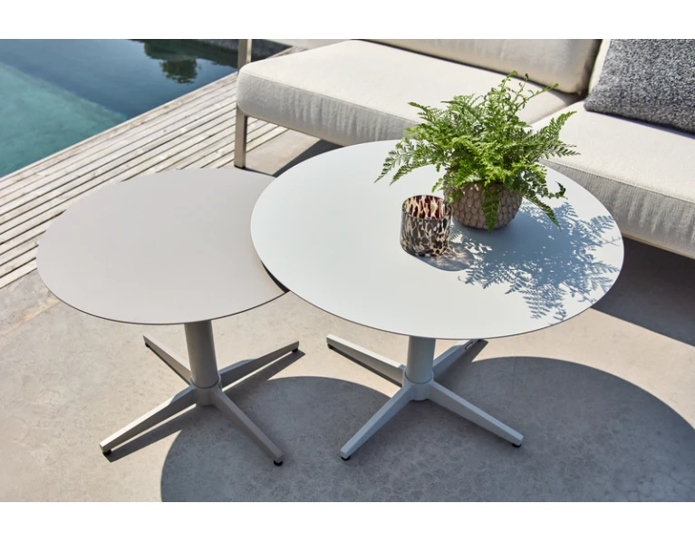 Modernus aliuminio kavos staliukas su išskirtine detale – Mill Large Pearl white spalvos.