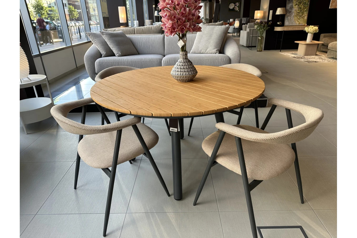 Matmenys: stalas skersmuo 120 cm, kėdės: