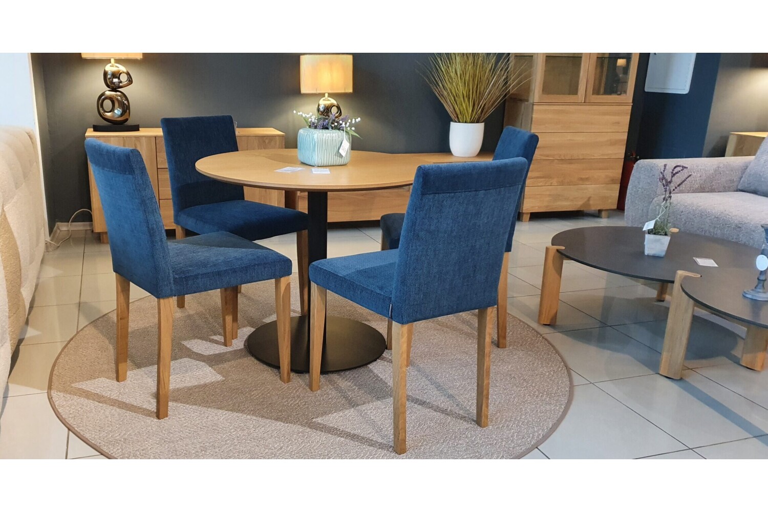 1vnt kėdė be defektų, su yedi 433 ryškiai mėlynu, švelnios tekstūros gobelenu.