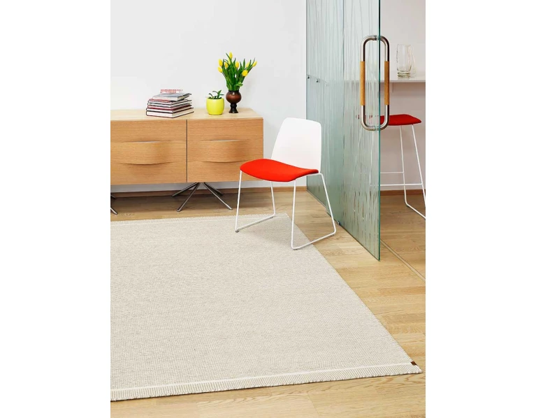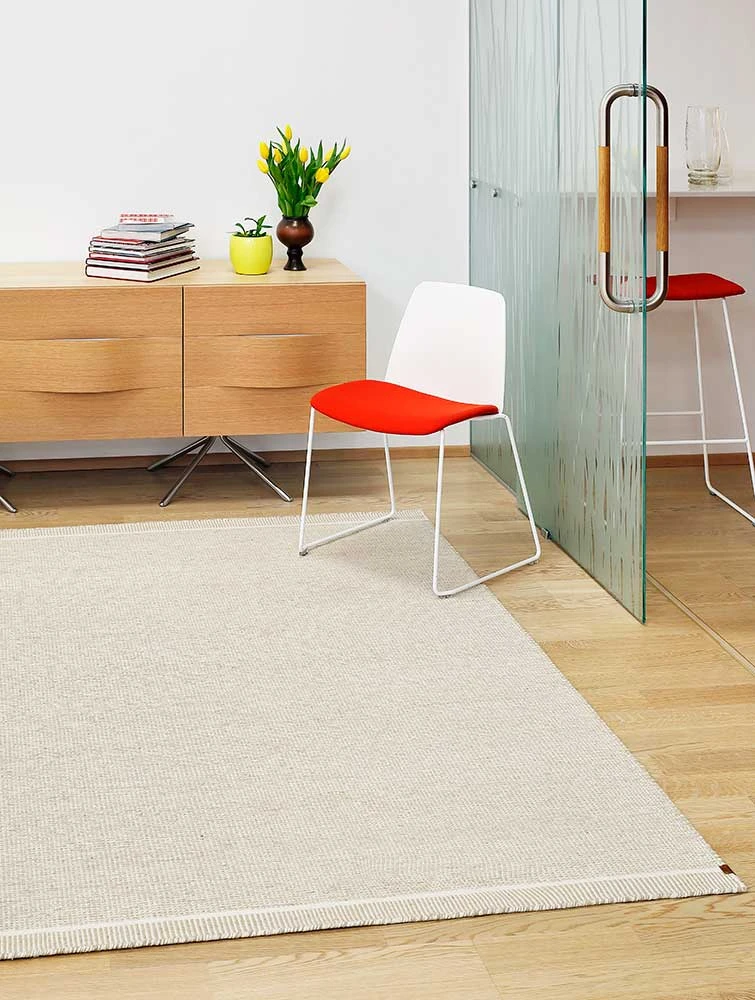 Vilnos pluošto kilimas Nummela linen – pieniškos baltos spalvos jauki detalė jūsų namuose.